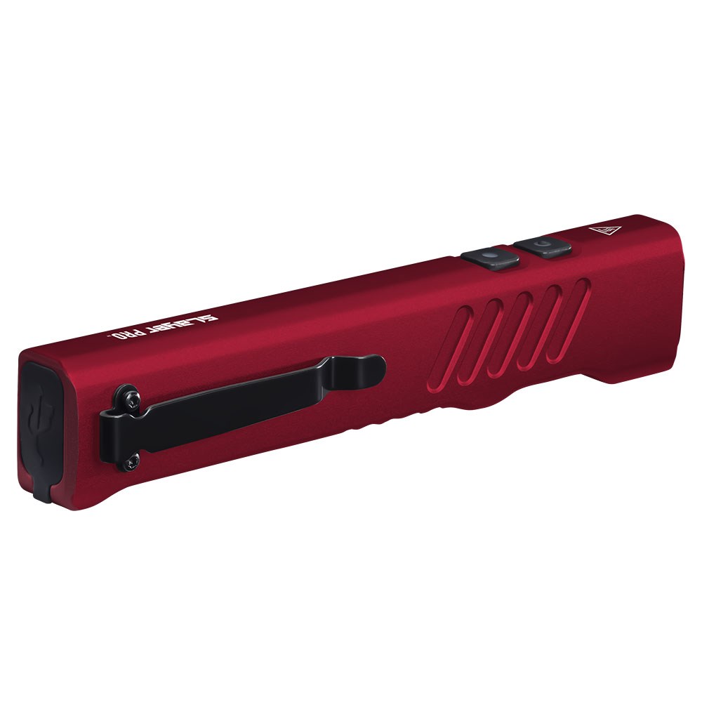 This rechargeable flashlight features a sleek slim, all-aluminum frame that fits comfortably in your hand and slides effortlessly into pockets. A removable metal clip ensures secure storage.