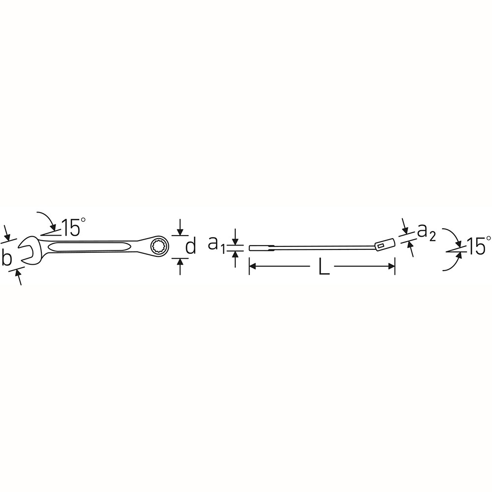 - The open end is angled 15° for better accessibility when tightening or loosening bolts.