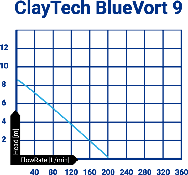 BlueVort 9 has an open vortex design and can handle pumping soft solids up to 25m min size making it suitable for grey water tank and final pumping from domestic water treatment systems. It has been designed as a multi-purpose submersible pump also suited for drainage and water transfer applications.