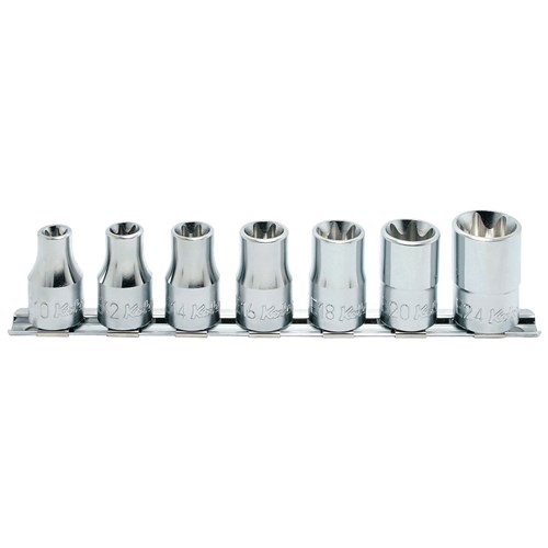 SOCKET SET 1/2DR E10-E24 7PC. ON RAIL